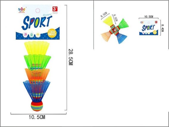 Zestaw 4 lotek do badmintona, palstikowe, kolorowe; 28,5x10,5x8,5cm, PPB