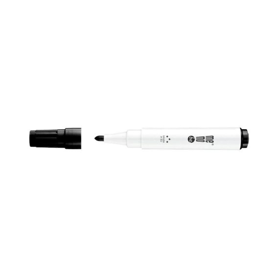 Marker do tablic suchościeralnych i flipchartów MemoBe z tuszem w kolorze czarnym i okrągłą końcówką w rozmiarze 1-3 mm. Przeznaczony do pisania i rysowania po powierzchni tablicy suchościeralnej i po blokach do flipchartów. Może być pozostawiony bez skuwki do 3 dni (ISO 554). Łatwościeralny z tablic tusz nie przebija na drugą stronę bloków do flipchartów. Obudowa markera wykonana w 30% z tworzyw z recyklingu. Wyposażony w wentylowaną skuwką zgodną z normą ISO 11540:1993. Dostępny w 4 kolorach: czarnym, zielonym, czerwonym i niebieskim. Wyprodukowany w Europie. Dostarczany w opakowaniu 10 szt.