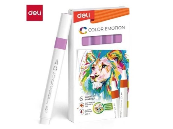 Dodaj wyrazisty akcent kolorystyczny z fioletowym markerem akrylowym DELI (opakowanie 6 szt., . Te markery zapewniają żywy, kryjący fioletowy który płynnie rozprowadza się na papierze, drewnie, metalu, szkle i innych materiałach. Dzięki trwałym końcówkom i równomiernemu przepływowi tuszu idealnie nadają się do szczegółowych prac artystycznych, etykietowania i projektów kreatywnych. Cechy: • Opakowanie 6 żółtych markerów akrylowych • zapewnia równomierny fioletowy tusz • Kryjący, intensywny tusz odpowiedni do wielu powierzchni • Łatwa aplikacja dzięki trwałym końcówkom markera • Idealne do prac artystycznych, rękodzielniczych i etykietowania