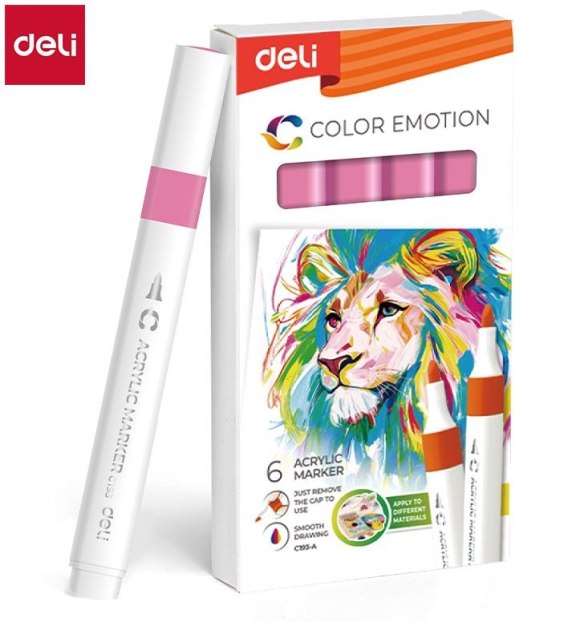 Dodaj wyrazisty akcent kolorystyczny z różowym markerem akrylowym DELI (opakowanie 6 szt., .