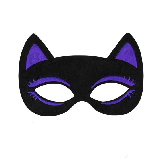 - Wzór: kocia maska z fioletowymi detalami.