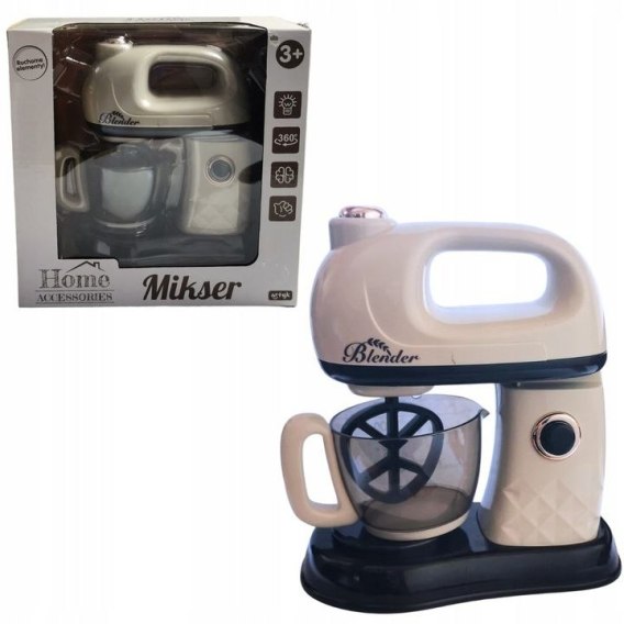KUCHENNY ROBOT MIKSER STOJĄCY NA BATERIE ARTYK Wspaniała zabawka dla wszystkich małych gospodyń domowych. Mikser jest na baterie, dzięki którym zabawka jest bardzo realna. Pomoże zrozumieć dziewczynkom działanie prawdziwego miksera, urozmaici niejedną zabawę w dom. By zabawa była jeszcze fajniejsza mikser został wyposażony w efekty świetlne oraz dźwiękowe. Piękny i nowoczesny wygląd miksera pomaga wyobraźni, a zabawka pozwala dziecku wykonywać dokładnie te same czynności, co rodzice lecz w znacznie bezpieczniejszej formie. Zawartość i cechy zabawki: mikser miska z uchwytem mieszadło mikser odchyla się do tyłu mieszadeło obraca się efekty świetlne Wymagane baterie 2 x AA (brak w zestawie) W zestawie: kuchenka, piekarnik, imitacja kurczaka, garnek, patelnia, pokrywki. Wiek: 3+ Wymiary opakowania: 185 cm x 17 cm x 9cm