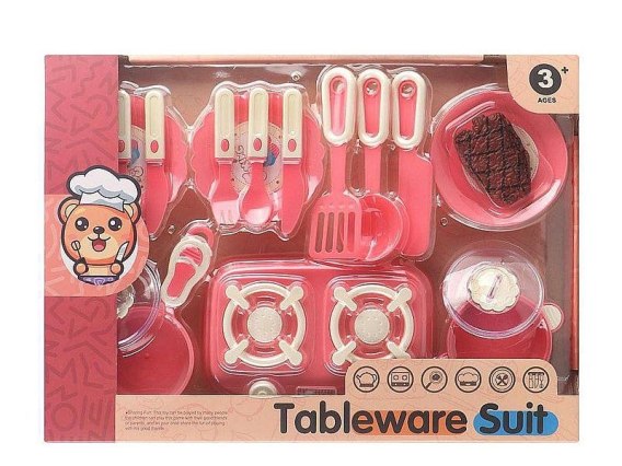 Zestaw naczyń kuchennych, z kuchenką; 40x29x5,5cm, W/B