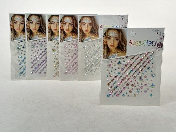 Zestaw naklejek do zdobienia twarzy, diamenciki; 16x12cm, B/C