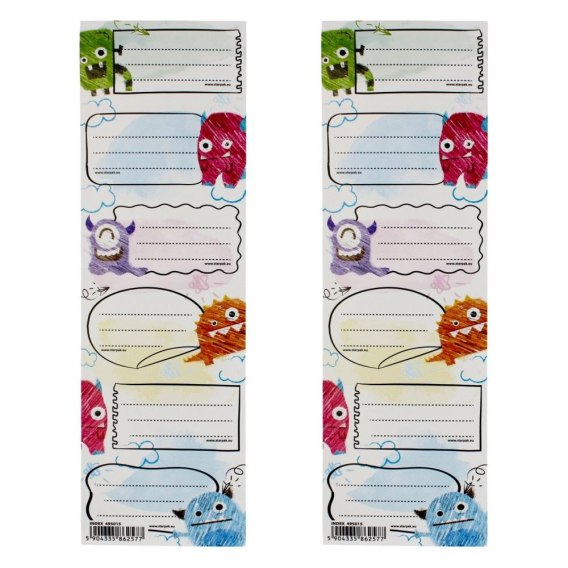 Zalety produktu: naklejki dostępne w kilku wzorach figurki Monster, na listku znajduje się 6 naklejek, naklejki pozwalają na opisanie zeszytów szkolnych, dzięki czemu unikniemy pomyłek przy pakowaniu tornistra do szkoły. Zestaw kolorowych naklejek na zeszyty z wizerunkami ulubionych bohaterów z kolekcji STARPAK. Zapoznaj się również z innymi produktami STARPAK Zawartość opakowania: 25 arkuszy po 6 szt. naklejek. Naklejki wykonane z papieru. Wymiary/waga: wymiary produktu dł. x wys. cm : 7x23, wymiary opakowania dł. x wys. cm : 8x23x1, waga produktu w opakowaniu kg : 0,07 kg. Nie odpowiednie dla dzieci poniżej 3 lat. Pakowane w folijkę. Waga produktu w opakowaniu kg : 0,07 kg.