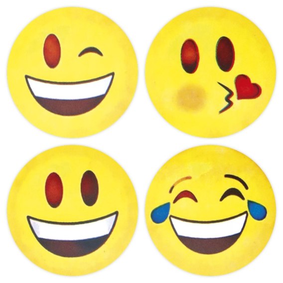 Naklejki papierowe na taśmie, 4 wzory emotikony, żółte. 500 sztuk.