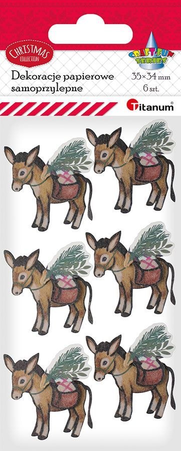 Dekoracje samoprzylepne papierowe, 3D, wzór: osiołki, wymiary: 35 x 34 mm. 6 sztuk.