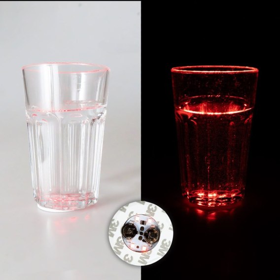 Podświetlenie LED w formie naklejki to efektowny gadżet, który zmienia zwykłą szklankę, kieliszek lub butelkę w świecący element dekoracyjny. Po przyklejeniu do dna naczynia i włączeniu, diody LED rozświetlają napój intensywnym światłem - idealnym na imprezy, Halloween, wieczory tematyczne czy eventy.