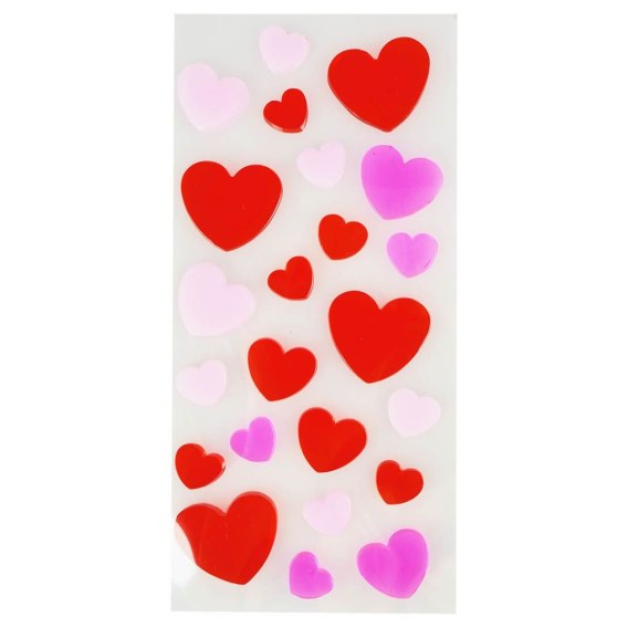 * Naklejki żelowe w kształcie serduszek o dekoracyjnym, walentynkowym charakterze.