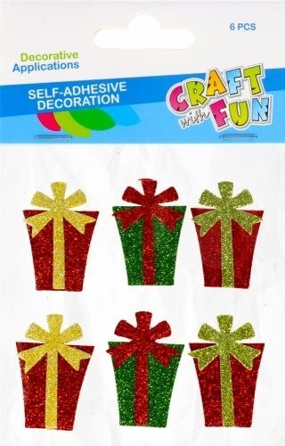 Zalety produktu: idealne do zdobienia kartek świątecznych, świetnie sprawdzą się również jako element dekoracyjny do pokoju dziecka czy dodatki na Boże Narodzenie. Wszystkie ozdoby posiadają samoprzylepną taśmę. Miękkie piankowe naklejki od CRAFT WITH FUN. Żywe kolory, różnorodne kształty i wzory dają praktycznie nieskończoną ilość możliwości ich stosowania. Używaj tych produktów w połączeniu z innymi akcesoriami oraz kompletami z serii CRAFT WITH FUN! Zawartość opakowania: 6 szt. piankowych naklejek Prezent Wszystkie elementy wykonane z pianki. Przeznaczone dla dzieci od lat:3+. Wymiary/waga: wymiary opakowania (dł. x wys. x gł.) [cm]: 10x17x1,waga produktu w opakowaniu [kg]: 0,06 kg. Pakowany w woreczek z zawieszką . Iner 12 szt. Karton zbiorczy 144 szt.