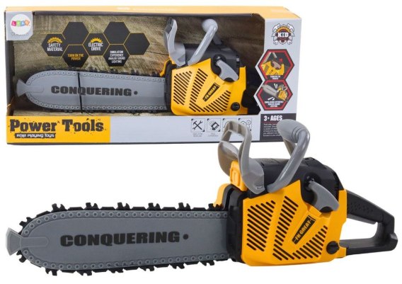 Piła jest łatwa w obsłudze — wystarczy przełączyć przycisk umieszczony z lewej strony zabawki, aby ją uruchomić. Następnie, po naciśnięciu przycisku na rączce, gumowe ostrza zaczynają się obracać, symulując działanie prawdziwej piły łańcuchowej, ale w pełni bezpiecznej wersji dla dzieci. Dzięki realistycznym efektom dźwiękowym i świetlnym, zabawa z piłą staje się jeszcze bardziej ekscytująca i wciągająca. Dziecko może usłyszeć charakterystyczny dźwięk pracy piły i zobaczyć migające światła, co dodaje dodatkowego realizmu i dynamiki.