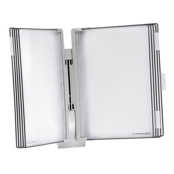 Naścienny system prezentacyjny Djois x Tarifold z serii Design w rozmiarze A4 wykonany z twardego i wytrzymałego tworzywa. W skład zestawu wchodzi jeden wysokiej jakości uchwyt naścienny przeznaczony do montowania na pionowych powierzchniach i 10 paneli prezentacyjnych otwieranych z góry w kolorze niebieskim. System pozwala w łatwy sposób zapewnić szybki dostęp do wszystkich ważnych informacji w miejscach, gdzie są potrzebne. Model zawiera komplet wzmocnionych tworzywem PS paneli prezentacyjnych, wykonanych według opatentowanej francuskiej technologii, zapewniając niezrównany poziom jakości i wytrzymałości. Specjalny stalowy drut powoduje, że panele są bardzo elastyczne i zarazem odporne na wszelkiego rodzaju zgięcia. Kolorowa ramka ułatwia identyfikację i prezentację dokumentów. Matowy, antyodblaskowy materiał z przyjaznego dla środowiska PP 110 µ eliminuje refleksy świetlne, ułatwiając czytanie nawet przy bezpośrednio padającym świetle. Panele utrzymywane są pod odpowiednim kątem, by dostęp do informacji był jeszcze łatwiejszy i wygodniejszy. Dostarczane wraz z 5 zakładkami indeksującymi umożliwiającymi organizację prezentowanych treści. Wszystkie produkty marki Djois x Tarifold są wykonane z materiałów najwyższej europejskiej jakości pozwalającej użytkownikowi na korzystanie z produktu bez żadnych awarii.