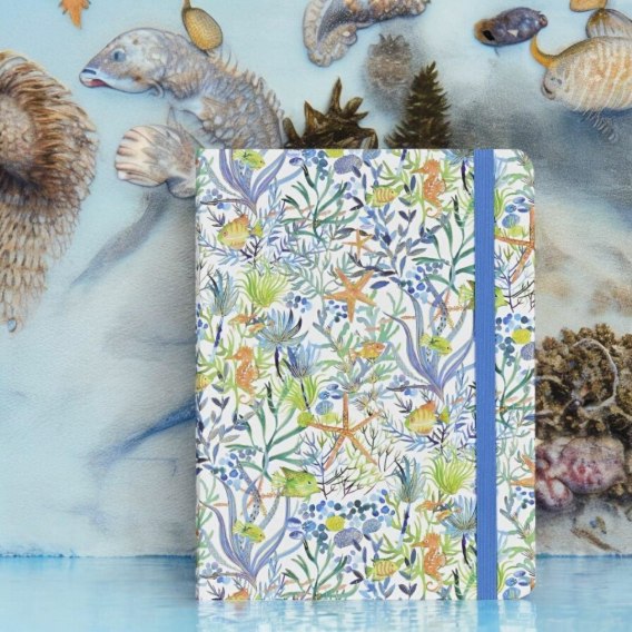 Średni notatnik firmy Peter Pauper Press - Sen Oceanu (Ocean Dream). Każdy notes tej marki jest wyjątkowym dziełem sztuki. Bogactwo wzorów i kolorów pozwala wybrać ten idealny. Notes idealnie nadaje się na prezent. Okładka przedstawia bogactwo podwodnego świata - rozgwiazdy, koniki morskie, tropikalne ryby i morską roślinność. Szczegóły: - okładka sztywna, wytłaczana, zdobiona złotą folią - notes jest zszywany - okładka oraz kartki z zaokrąglonymi rogami - zamknięcie na gumkę - na końcu koperta na luźne notatki, wizytówki, itp. - kartki wykonane z wysokiej jakości papieru bezkwasowego - niezwykle trwałe, z cechami gwarantującymi długi czas użytkowania - gramatura 120 gsm - zadruk w jasnoszare linie, dwustronny, na lekko kremowym papierze - wymiary: 15,9 cm x 21 cm - format zbliżony do A5 - ilość stron: 160