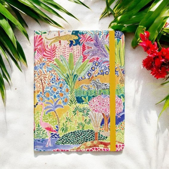 Średni notatnik firmy Peter Pauper Press - Tropikalny Sen (Tropical Dream). Każdy notes tej marki jest wyjątkowym dziełem sztuki i doskonale nadaje się na prezent. Bogactwo wzorów i kolorów pozwala wybrać ten idealny, najlepiej dopasowany do osobistych preferencji i okazji. Szczegóły: - sztywna, wytłaczana okładka, zdobiona złotą folią - zapewnia komfort pisania - notes jest zszywany, a po otwarciu leży płasko - okładka oraz kartki z zaokrąglonymi rogami - zamknięcie na gumkę - na wewnętrznej stronie tylnej okładki koperta na luźne notatki, wizytówki, itp. - kartki wykonane z wysokiej jakości papieru bezkwasowego - niezwykła trwałość, z cechami gwarantującymi długi czas użytkowania - gramatura 120 gsm - zadruk w jasnoszare linie, dwustronny, na lekko kremowym papierze - wymiary: 15,9 cm x 21 cm - format zbliżony do A5 - ilość stron: 160