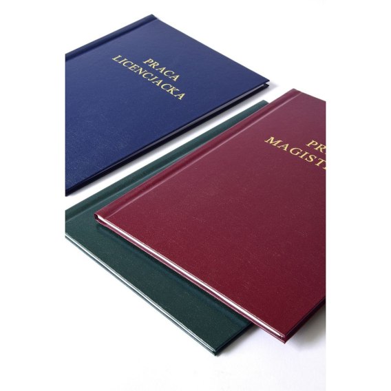 Okładki kanałowe twarde, trwałe, odporne na zabrudzenia, eleganckie okładki do oprawy dokumentów, najwyższej jakości okładka introligatorska z metalową listwą zamocowaną w grzbiecie, okleina o fakturze skóry, możliwość szybkiej i trwałej oprawy bez konieczności dziurkowania czy sklejania, Rodzaje okładek kolory: granatowy, bordowy, zielony, czarny, bez napisu lub z napisem w kolorze złotym: Praca Dyplomowa, Praca Magisterska, Praca Licencjacka, rozmiary: do 44 kartek (AA), do 95 kartek (A), do 125 kartek (B), do 150 kartek (C), opakowanie 10 lub 8 sztuk jednakowych okładek w zależności od rozmiaru, opakowanie (AA, A, B, C - 10 szt, ),
