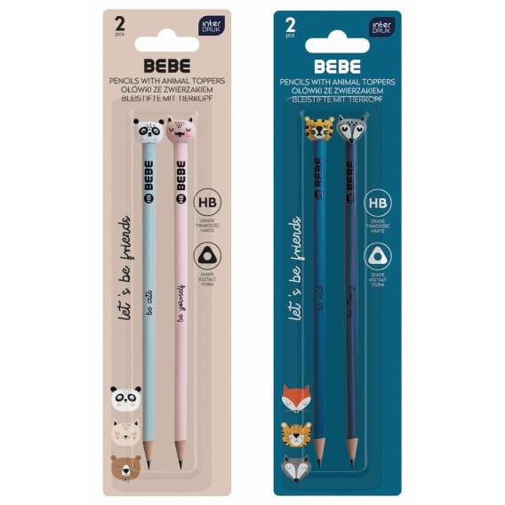 Zestaw 2 ołówków BEBE Friends to idealny wybór dla dzieci rozpoczynających przygodę z pisaniem i rysowaniem. Zawiera dwa ołówki HB z gumką, które dzięki okrągłemu profilowi i matowemu wykończeniu zapewniają wygodne trzymanie i płynne pisanie. Każdy ołówek jest zakończony uroczą figurką zwierzaka z serii BEBE Friends, co sprawia, że nauka staje się jeszcze przyjemniejsza. Doskonałe do szkoły i kreatywnych zabaw w domu!