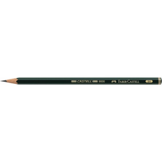 Ołówek grafitowy Castell 9000 Faber-Castell w kolorze zielonym. Kultowy i klasyczny – sześciokątny ołówek najwyższej jakości z wieloletnią tradycją. Wprowadzony na rynek przez hrabiego Alexandra von Faber-Castell w 1905 roku. Jego jakość i precyzyjnie stopniowane stopnie twardości sprawiły, że stał się ulubieńcem artystów i ilustratorów. Odpowiedni nie tylko do pisania, ale też szkicowania i rysowania. Z odpornym na pękanie grafitem o stopniu twardości 3H, dzięki bezpiecznemu procesowi wiązania (SV). Wykonany z certyfikowanego, miękkiego drewna pochodzącego ze zrównoważonego i odpowiedzialnie zarządzanego leśnictwa. Powierzchnia pokryta lakierem na bazie wody – bezpiecznym dla środowiska i zdrowia. Dostępny w 16 różnych stopniach twardości, co czyni go idealnym ołówkiem do wszystkich zastosowań technicznych i artystycznych. Każdy ołówek jest opatrzony kodem kreskowym.