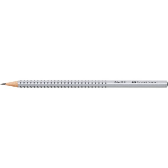 Ołówek grafitowy Grip 2001 Faber-Castell w kolorze srebrnym. Nawet w czasach zdominowanych przez komputery, telefony i internet, ołówek wciąż pozostaje nieodłącznym towarzyszem codzienności. To doskonałe w swojej prostocie narzędzie. Ergonomiczny trójkątny kształt i charakterystyczna dla tej serii opatentowana strefa Grip z małymi, antypoślizgowymi punktami zapewniają wysoki komfort użytkowania i niemęczące, wygodne pisanie i szkicowanie. Odpowiedni również dla leworęcznych. Z odpornym na pękanie grafitem o stopniu twardości H, dzięki bezpiecznemu procesowi wiązania (SV). Wykonany z certyfikowanego drewna pochodzącego ze zrównoważonego i odpowiedzialnie zarządzanego leśnictwa. Powierzchnia pokryta lakierem na bazie wody – bezpiecznym dla środowiska i zdrowia dzieci.