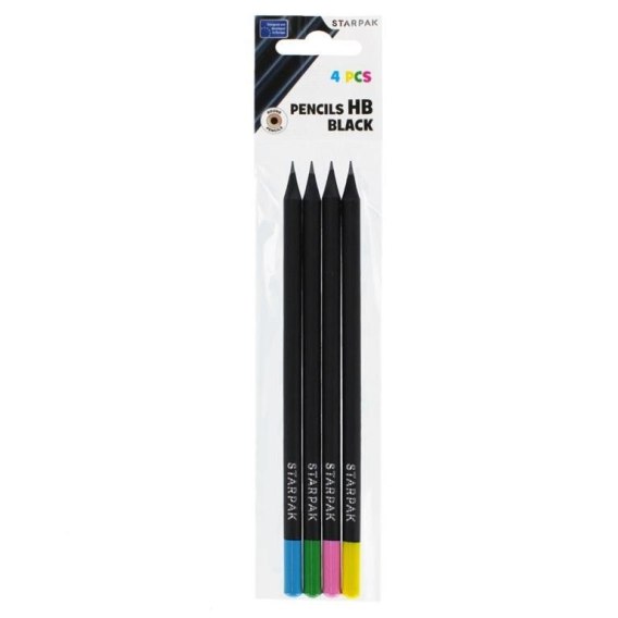 Zalety produktu: Zestaw 4 ołówków okrągłych Black z kolekcji STARPAK. Każdy ołówek wykonany z trwałego drewna, zapewnia komfort rysowania i pisania. Ołówek nie łamie się podczas strugania. Zapoznaj się również z innymi produktami Starpak z serii szkoła, biuro Produkt przeznaczony dla dzieci w wieku: 3 . Pakowany w folię z zawieszką. Wymiary opakowania wys. szer. x gł. cm 24x6x1. Waga opakowania kg 0,02kg. Cechy produktu: ołówki to podstawowy produkt podczas nauki w szkole rysowanie, matematyka, pisanie łatwe w struganiu, nie łamią się nie brudzą uniwersalna twardość HB. Opis: ołówki STARPAK to najbardziej uniwersalny artykuł piśmienniczy wykorzystywany w szkole. Służy nie tylko do rysowania i szkicowania, ale jest również niezbędny podczas lekcji matematyki, do nauki pisania, do robienia notatek na marginesach książek lub zeszytów. Dlatego tak ważna jest jego jakość. Ołówki STARPAK są wykonane z odpornego, nie łamiącego się podczas strugania grafitu. Dzięki wysokiej jakości grafit nie sypie się, nie brudzi i nie kruszy. Twardość HB sprawia, że ołówki STARPAK są uniwersalne i mogą być wykorzystywane zarówno do pisania, jak tez rysowania. STARPAK oferuje 31 różnych modeli ołówków.