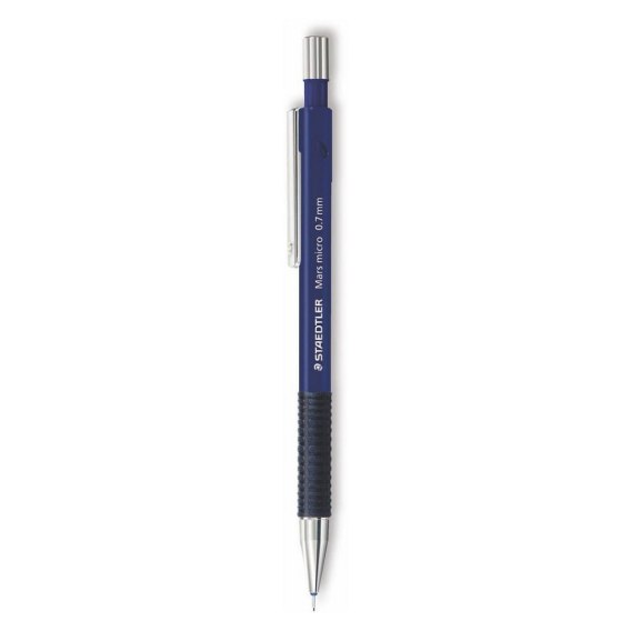 Techniczny ołówek automatyczny do kreślenia i pisania. Oznaczenie kolorystyczne ISO. Przeciwpoślizgowa, gumowa strefa uchwytu. Metalowy klips, przycisk i końcówka. Bezpieczny w transporcie i w kieszeni, dzięki chowanej końcówce. Mocna, cylindryczna końcówka, idealna do kreślenia przy użyciu linijek i szablonów. Amortyzacja grafitu zapewniająca wysoką odporność na złamania. Łatwy do uzupełnienia grafitami Mars® micro carbon dzięki systemowi -na-raz”. Ołówek wyposażony jest w gumkę ( nie zawierającą PVC oraz lateksu ) i grafity B. 10 szt. w opak.