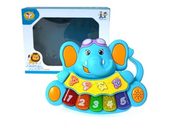 Organki słonik, na baterie, światło, muzyka; 22,5x17x5,5cm, W/B