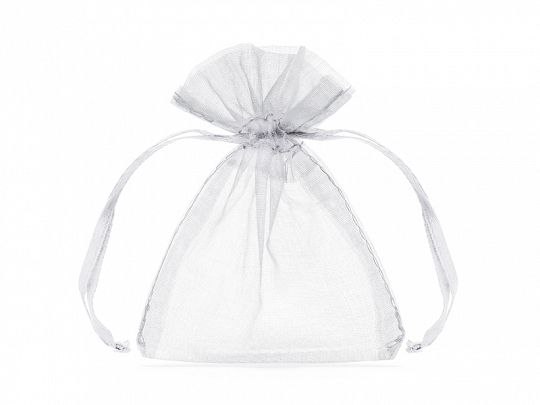Ściągane woreczki z gładkiej organzy w kolorze białym, wymiary ok. 7.5 x 10 cm. Idealne dla gości weselnych.