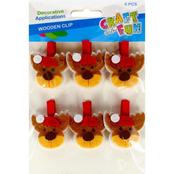 Zalety produktu: idealne do przyczepiania zdjęć, obrazków oraz wszelkiego rodzaju kartek, doskonałe do wykonywania dekoracji metodą scrapbooking oraz rękodzieł. Używaj tego produktu w połączeniu z innymi akcesoriami oraz kompletami z serii CRAFT WITH FUN Zawartość opakowania: 6 szt. 4 cm spinaczy z filcowym Reniferem. Produkt wykonany z drewna oraz filcu. Wymiary/waga: wymiary opakowania dł. x wys. x gł. cm : 13x18x2, waga produktu w opakowaniu kg : 0,03 kg. Zestaw przeznaczony dla dzieci w wieku: 3 . Pakowany w woreczek z zawieszką. Iner 12 szt. W kartonie zbiorczym po 144 szt.