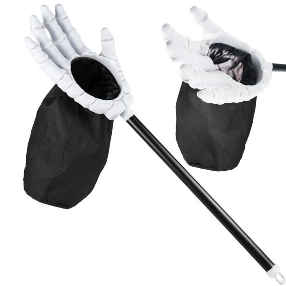 Upiorny gadżet, który łączy zabawę z praktycznym zastosowaniem! Łapka szkieletu w formie kościstej dłoni z przyczepioną torebką to idealny dodatek na zbieranie upominków podczas zabawy „cukierek albo psikus", ale też świetny element przebrania na imprezę w Halloween.