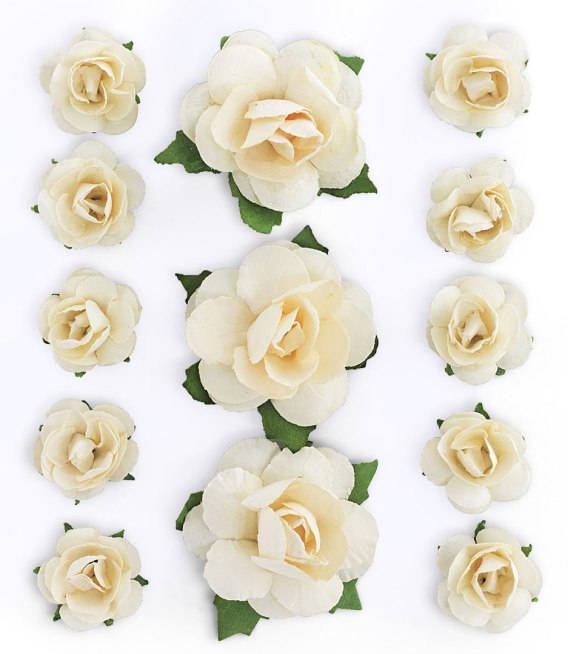 Kwiaty papierowe z łodyżką RÓŻE, 13 sztuk pojedynczych kwiatów w opakowaniu, papierowe, kolor brzoskwiniowy,