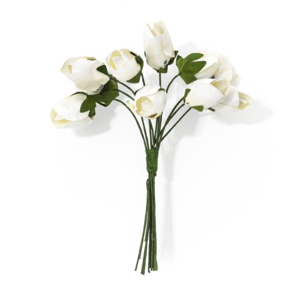Kwiaty papierowe BUKIECIK-TULIPANY, 10 sztuk pojedynczych kwiatów w opakowaniu, papierowe z łodyżką, kolor biały,
