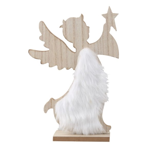 Ozdoba świąteczna Drewniany aniołek z futerkiem Home And Garden (6283)