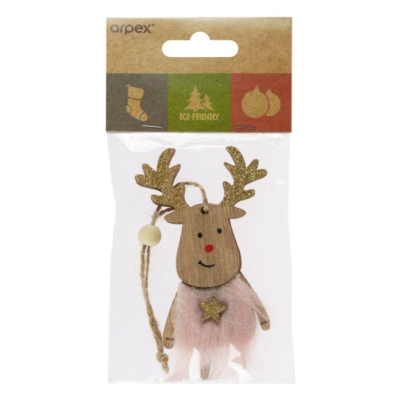 Ozdoba świąteczna Drewniany renifer brokatowy z futerkiem - 100% FSC Arpex (BD4833F)