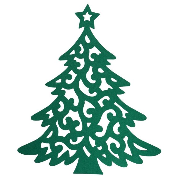 Podkładka filcowa w kształcie choinki to praktyczna i efektowna dekoracja, która doskonale podkreśli świąteczny klimat stołu. Wykonana z miękkiego, wytrzymałego filcu w kolorze zielonym, pełni zarówno funkcję ozdobną, jak i ochronną - zabezpieczając powierzchnię stołu przed zarysowaniami. Ażurowy wzór choinki z gwiazdką na szczycie nadaje jej elegancji i sprawia, że świetnie komponuje się z innymi świątecznymi dodatkami.