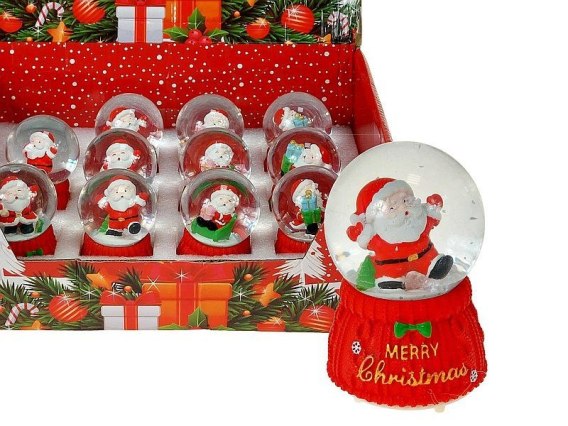 Kula śnieżna 7x4,5cm, szklana, ze światłem, z Mikołajem, display 12szt; 26x20x9cm, Box