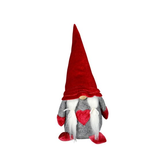 Skrzat dekoracyjny wykonany z filcowej podstawy w kolorze szarym oraz elementów welurowych w kolorze czerwonym. Nos skrzata wykonano z drewna. Dekoracja dostępna w dwóch wariantach: skrzat z puchatą brodą lub pani skrzatowa z puchatymi włosami. Dekoracja stojąca, dół ozdoby został obciążony, aby umożliwić stabilne jej postawienie. Uniwersalna dekoracja świąteczna pasująca do każdego wnętrza lub ciekawy pomysł na prezent. Ozdoba o wymiarze: 25 cm.