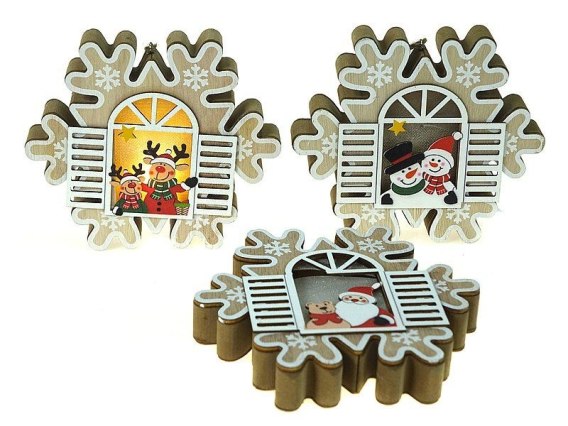 Ozdoba świąteczna drewniana, ze światłem; 14x12,5x2,5cm