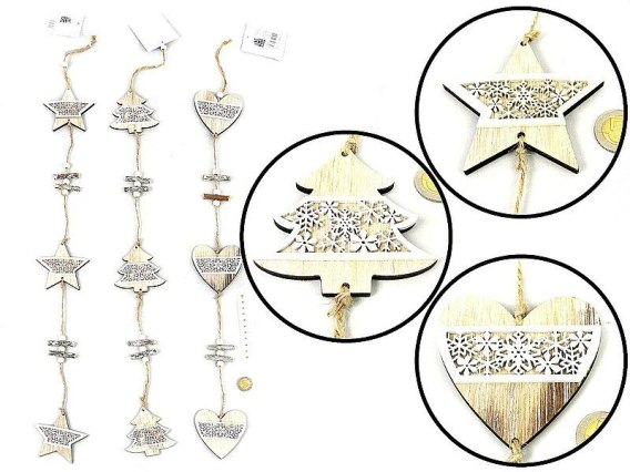 Ozdoba świąteczna zestaw 3 zawieszek drewnianych, dł.70cm; PPB. . Adar (399105)