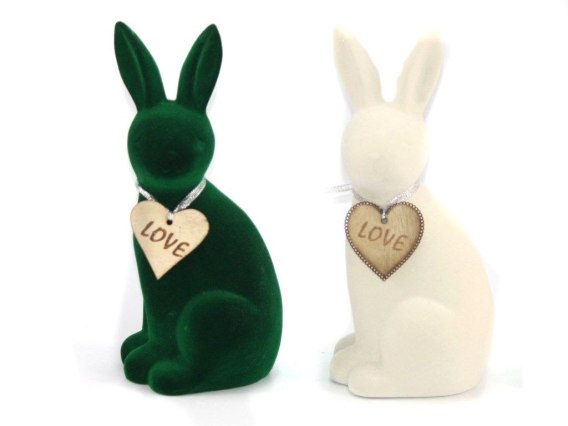 DEKORACJA CERAMICZNA KRÓLIK, POKRYTA MATERIAŁEM, BIEL, ZIELEŃ; 10,2x9,6x20,4cm ; BOX ; 4/48 ;