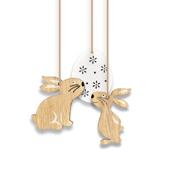 Ozdoba wielkanocna drewniana Pisanka zając 3 szt.