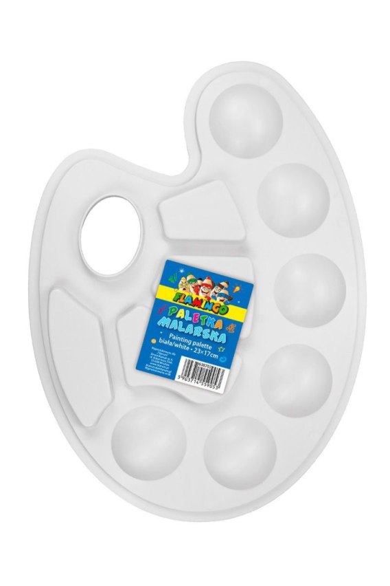 Praktyczna paletka malarska wykonana z gładkiego tworzywa sztucznego. Z 10 wgłębieniami do mieszania kolorów. Polecana szczególnie do farb akrylowych, temper oraz akwareli. Kolor: biały.