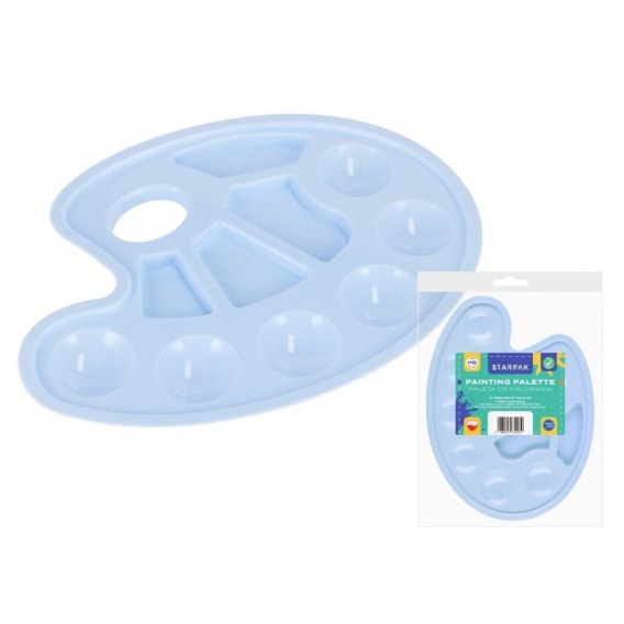 Zalety produktu: Paleta do farb z kolekcji STARPAK dedykowanej dla szkół. Paleta z wygodnym uchwytem, pozwala na poszukiwanie własnych rozwiązań kolorystycznych i pomoże każdemu młodemu malarzowi w pierwszych próbach artystycznych. Na palecie znajduje się 10 pojemniczków w do mieszania farb. Zapoznaj się również z innymi produktami STARPAK Paleta w kolorze niebieskim. Wymiary/waga: wymiary produktu wys. x szer. cm : 23x17, wymiary produktu w opakowaniu wys. x szer. cm : 23x19, waga produktu w opakowaniu kg : 0,03 kg. Produkt przeznaczony dla dzieci w wieku: 3 . Pakowany w folię z zawieszką. W kartonie zbiorczym po 20 szt.