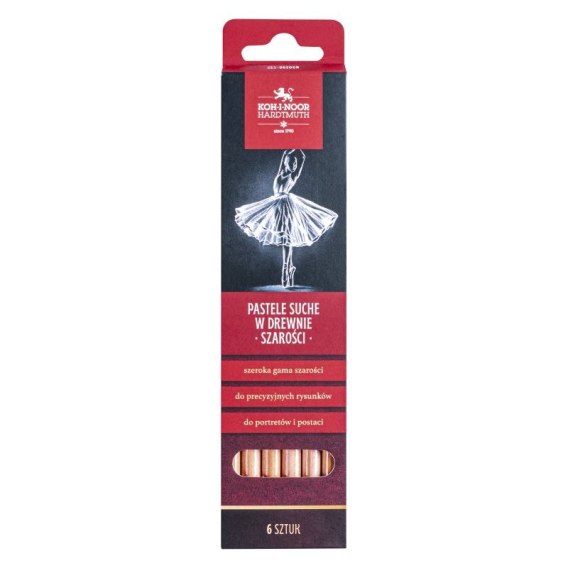 Pastele suche w drewnie Gioconda 6 sztuk SZARE 6 kol. Koh-I-Noor