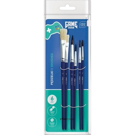 Pędzel GAME OVER drewniane 5902277327819 Interdruk (6 sztuki)