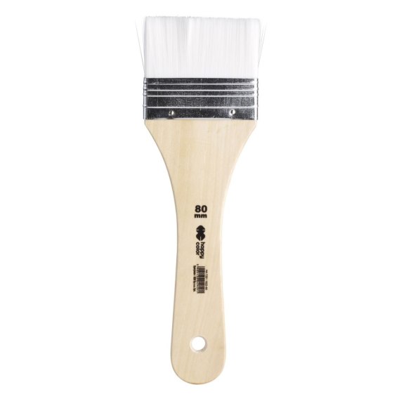 Pędzel nylonowy szeroki. Doskonały do farb olejnych i akrylowych, techniki decoupage oraz klejów wodnych. Do malowania, gruntowania oraz nakładania werniksów.