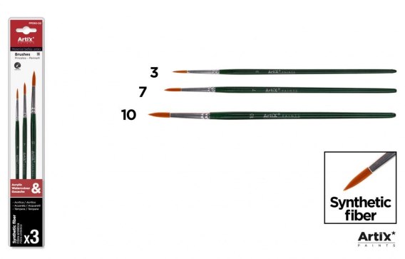 Profesjonalny pędzel z bardzo miękkim, białym włosiem syntetycznym. Idealny do tempery, akrylu i akwareli. Metalowa skuwka i drewniany korpus lakierowany na zielono. Długość: 20,5 cm. Blister 3 szt. okrągłe (nr 3, nr 7, nr 10)