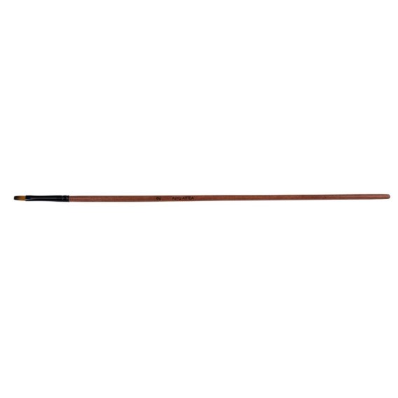 Profesjonalne pędzle do malowania farbami akrylowymi, olejnymi i temperami. Pokryta czarną farbą aluminiowa skuwka utrzymuje miodowo-czarne włosie na wygodnie wyprofilowanym długim, lakierowanym trzonku z naturalnego drewna o szlachetnym kolorze mahoniu. Elastyczne, miękkie włosie dobrze chłonie medium i precyzyjnie przenosi pigment na papier, płótno oraz inne struktury nie pozostawiając przy tym śladów pociągnięć pędzla. Okrągłe i płaskie pędzle utrzymują swój kształt.