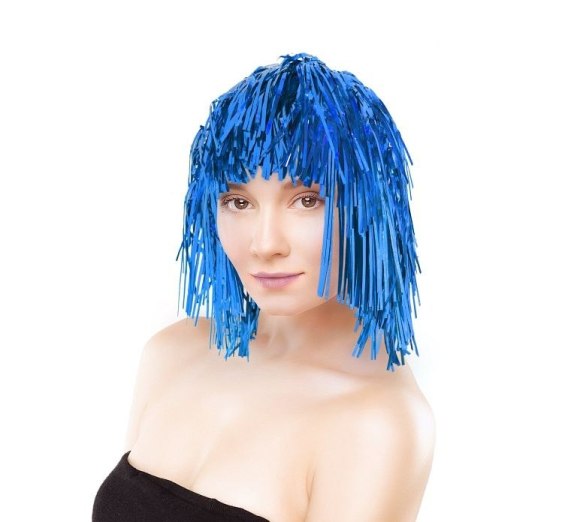 • Peruka niebieska wykonana z foliowych nitek, z grzywką Godan (TW/B)
