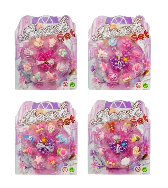 8 sztuk kolorowych pierścionków dla dziewczynek. Pierścionki są regulowane więc bez problemu zmiejszczą się na palce niejednej pięknej małej damy. Pierścionki mają kształt m.in.: kwiatków, motylków, serduszek, ludzików itp. Do pierścionków dołączono także koraliki i żyłkę z których można zrobić naszyjnik albo bransoletkę. Pierścionki zapakowane są w kartonową podstawkę z przezroczystym kloszem. Podane wymiary są wymiarami opakowania. Produkt występuje w kilku wersjach kolorystycznych, wybierany