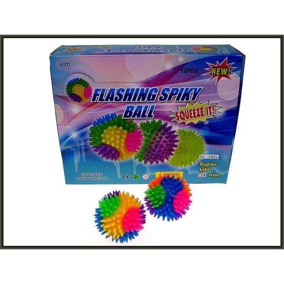 Piłeczka kolorowa z kolcami ze światłem 8cm