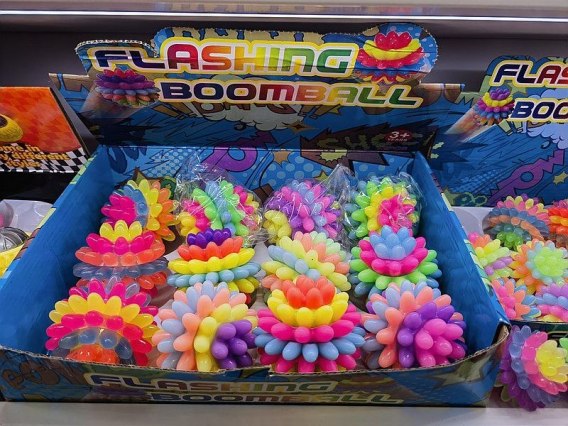 Piłeczka ze światłem śred.7,5cm, z wypustkami, masująca, dobrze odbijająca się, display 12szt; 31x23x8cm, Box